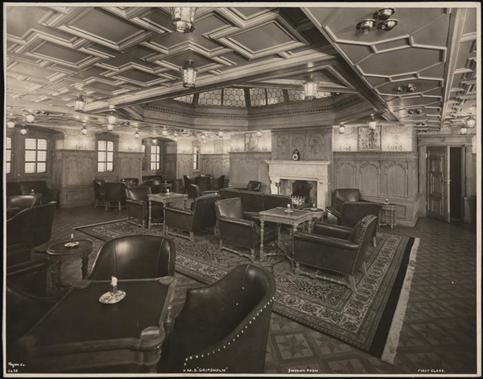 Swedish American Line, S.S. "Drottningholm", Third Class, Interior, Smoking Room.