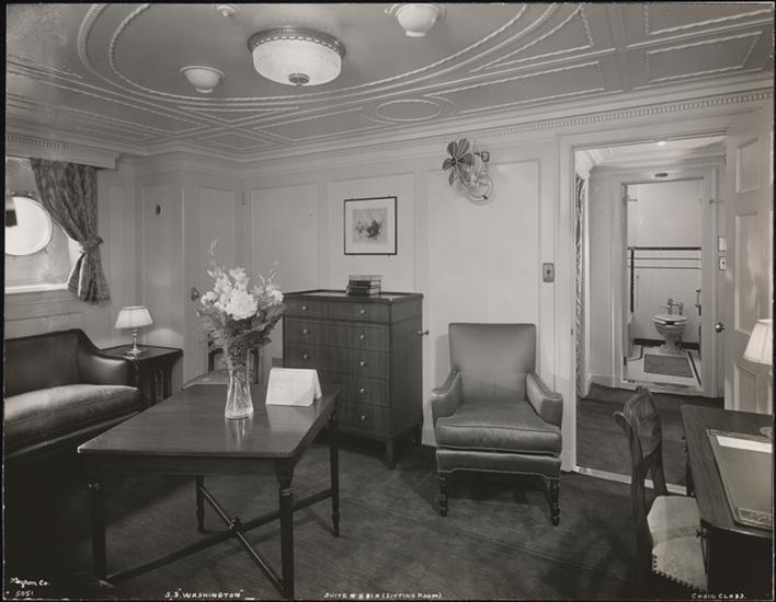 United American Lines, S.S. "New York", First Class, Interior, Suite B. 33-35, Sitting Room.