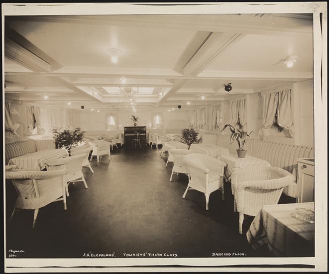 United American Lines, S.S. "Cleveland" Pier 86, N.R., Interior, Tourists Class, Dancing Floor.