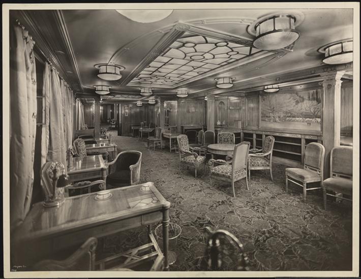 French Line, S.S. "Paris" (First & Second Classes), First Cabin, Music & Lounge Room.