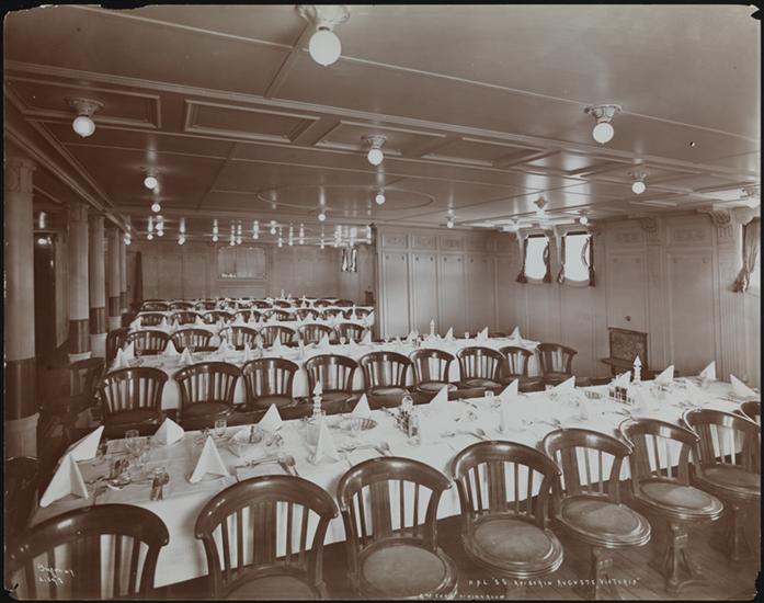 A second class dining room on the S.S. "Kaiserin Auguste Victoria".