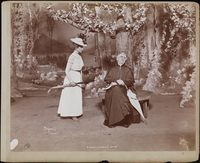 A scene from R. Marshall's comedy "A Royal Family" presented by Charles Frohman at the Lyceum Theatre in 1900, featuring Annie Russell as the Princess Alestine Victorine Angela.