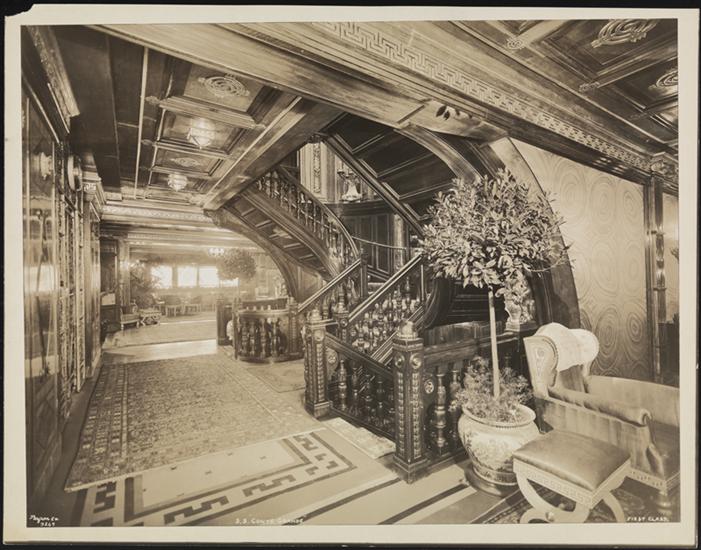 Lloyd Sabaudo Line, S.S. "Conte Grande" Pier 95 North River, First Class, Interior, Stairway (Forward).