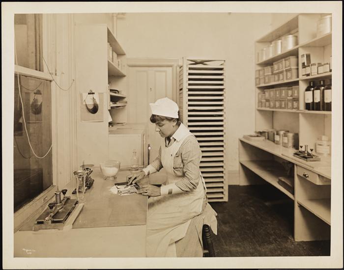 A worker in the tablet manufacturing department of the Crystal Chemical Co. at 134th Street & Willis Avenue.